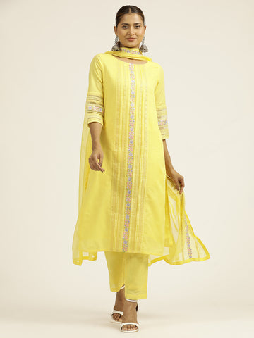 Embroidered Pure Cotton Floral Kurta Sets With Dupatta