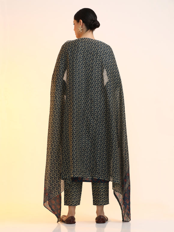 Floral Embroidered Straight Cotton Blend Kurta & Trousers Sets