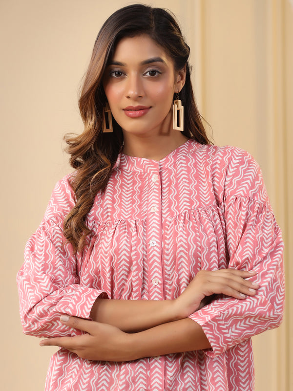 Pink Geometric Printed Short Kurta With Palazzo Co-ord Set Sale price₹ 1,409 Regular price₹ 3,999Save 65%