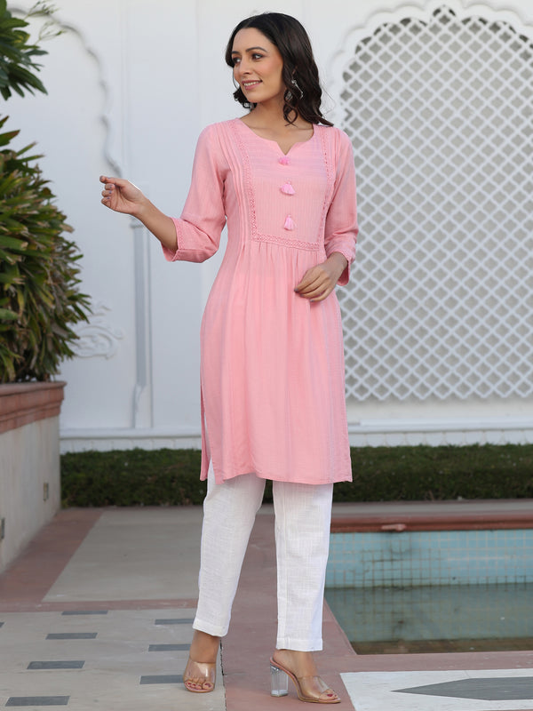 Pink Ethnic Printed Cotton Crochet Lace Embellished Short Kurti Sale price₹ 619 Regular price₹ 1,799Save 66%