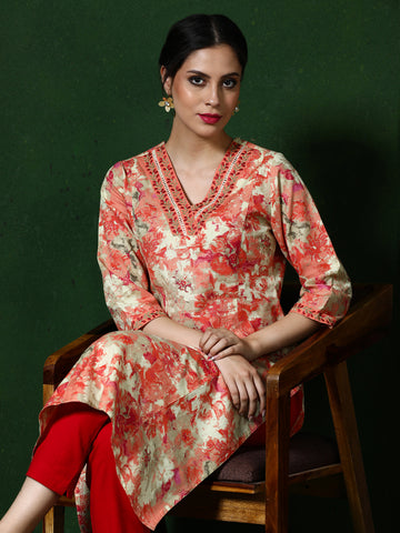 Peach Floral Printed A-line Kurta Sale price₹ 1,109 Regular price₹ 1,799Save 38%