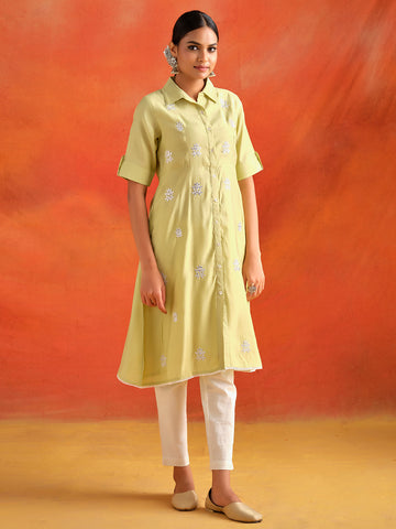 Lime Green Mirror Work Viscose Chanderi A-line Kurta Sale price₹ 1,819 Regular price₹ 2,499Save 27%