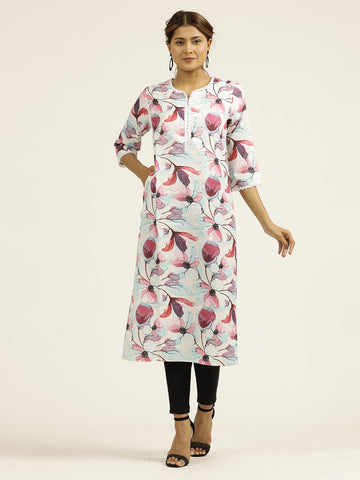 Off White & Magenta Floral Printed A-Line Kurta Sale price₹ 1,109 Regular price₹ 1,699Save 35%