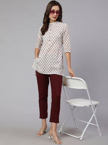 White Geometric Printed Cotton Short Kurta With Burgundy Pants Sale price₹ 1,369 Regular price₹ 4,199Save 67%