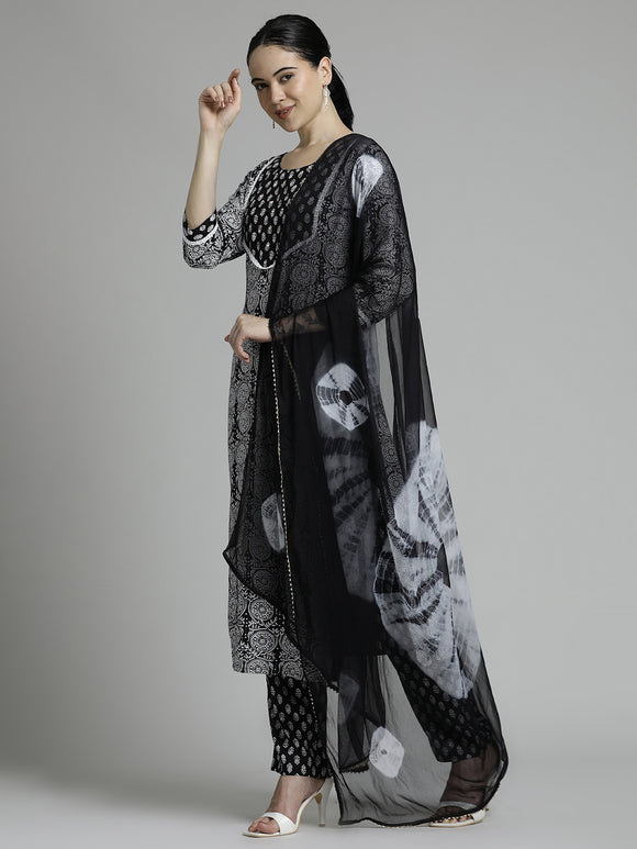 Ethnic Printed Black Kurta Set With Tie-Dye Dupatta Sale price₹ 1,359 Regular price₹ 3,499Save 61%