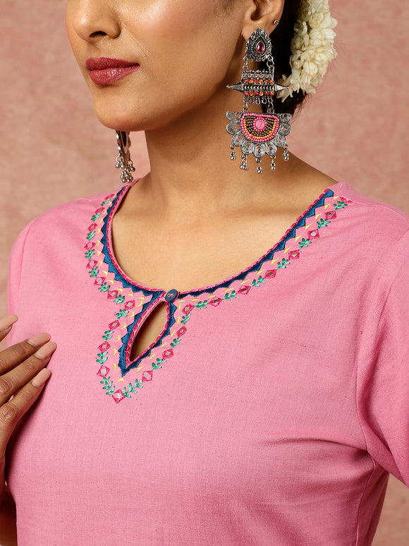 Pink Embroidered Yarn Dyed Kurta With Pants Sale price₹ 1,239 Regular price₹ 4,699Save 74%