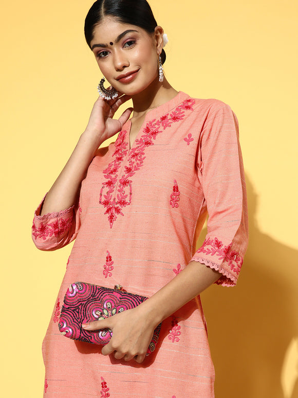 Peach Solid Straight Kurta With Palazzo Sale price₹ 1,169 Regular price₹ 3,499Save 67%