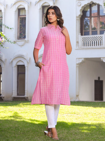 Pink Self Weaved Checkered Straight Embroidered Kurta With Pants Sale price₹ 919 Regular price₹ 3,499Save 74%