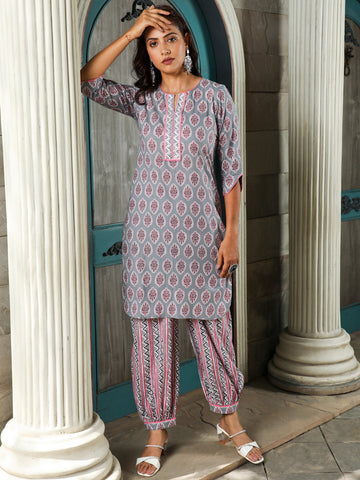 This is the best opportunity to upgrade your fashion wardrobe with a trendy Kurti with trousers set available at jaipurkurti.com. If you are looking to buy workwear, casual wear, or party wear kurta pant sets then you are at the right place. A huge variety and styles of designer and pocket-friendly kurta pant sets are at your fingertips. Our wide collection of ethnic wear for women projects a myriad of fashion closet essentials. Such great designs and styles will help you to be the center of attraction, wherever you go wearing them.
