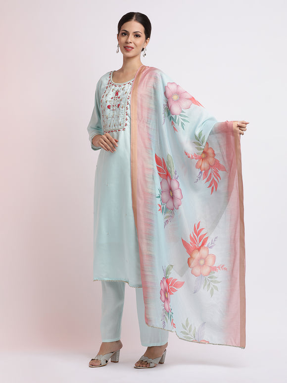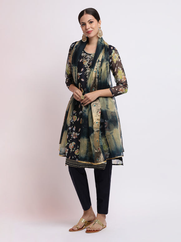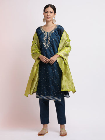 The evergreen kurta pant set is the flavor of the season and will give you a sassy look. Donning a long Kurti with pants and a dupatta set design will make the heads turn and will definitely enhance your style sense. All our kurtas are made up of superior quality fabric which feels soft and smooth. Pairing them with straight pants is a basic need for any occasion which makes these pants so comfortable to wear for casual and formal wear. We have an extensive collection of patterns in kurta trouser style, if you want to shop for comfortable wear for daily use these kurta pant sets are best for your confident look.
