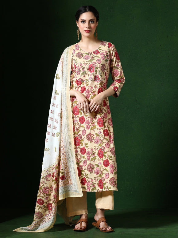 Beige Floral Digital Printed Embroidered Linen Suit Set Sale price₹ 2,449 Regular price₹ 4,099Save 40%