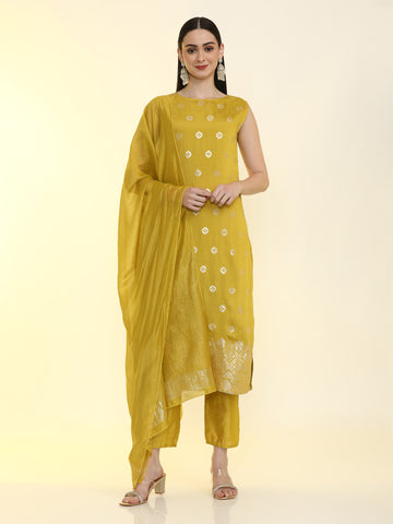 Mustard Chanderi Mirror Embroidered Straight Kurta With Palazzo Sale price₹ 1,359 Regular price₹ 4,249Save 68%