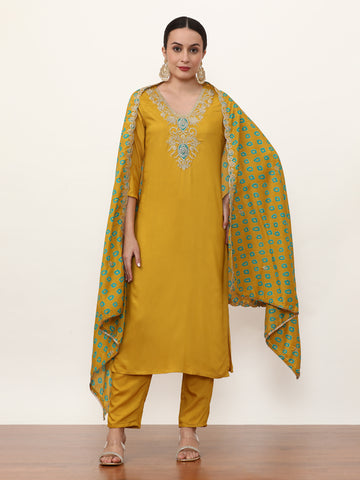 Mustard Festive Embroidered Poly Silk Kurta Set With Dupatta Sale price₹ 1,979 Regular price₹ 3,599Save 45%