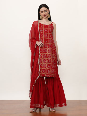 Fuchsia Pink Bandhani Angrakha Kurta With Leheriya Pants And Dupatta Sale price₹ 2,389 Regular price₹ 3,999Save 40%