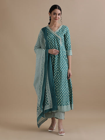 Turquoise Blue Block Printed Anarkali Kurta Set With Dupatta Sale price₹ 2,699 Regular price₹ 5,199Save 48%