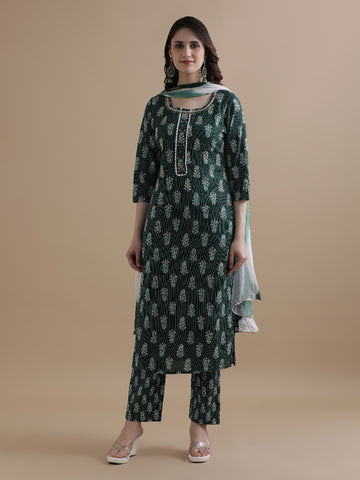 Mehendi Green Floral Printed Embroidered Kurta Set With Dupatta Sale price₹ 3,689 Regular price₹ 6,699Save 45%