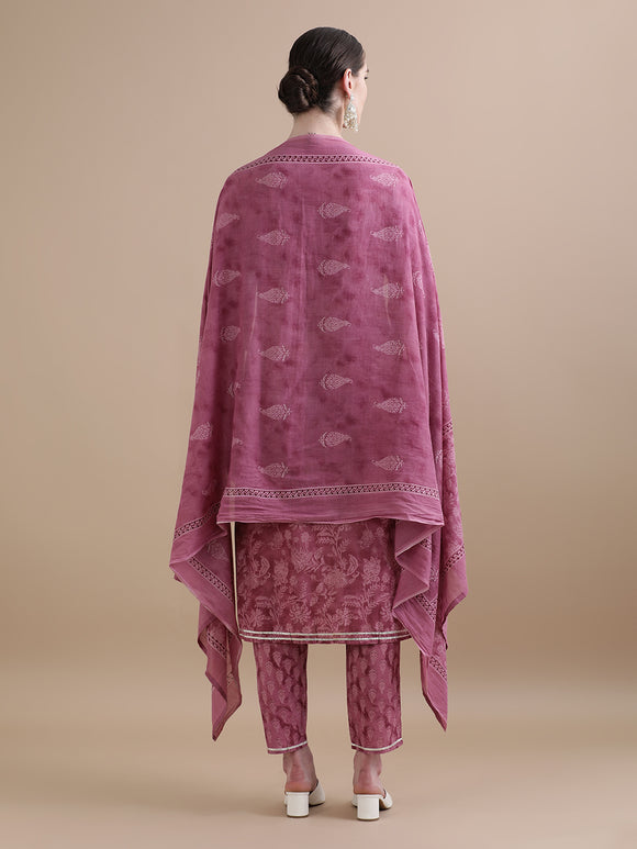 Pink Chanderi Kantha Embroidered Kurta With Palazzo And Dupatta Sale price₹ 3,019 Regular price₹ 4,999Save 40%