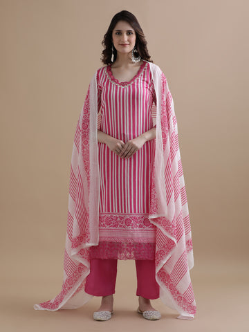 Pink Striped Printed Thread Work Pure Cotton Kurta With Pant & Mulmul Dupatta Sale price₹ 1,839 Regular price₹ 4,999Save 63%