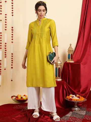 Embroidered Mustard Pintuck Straight Kurta Sale price₹ 1,299 Regular price₹ 2,499Save 48%