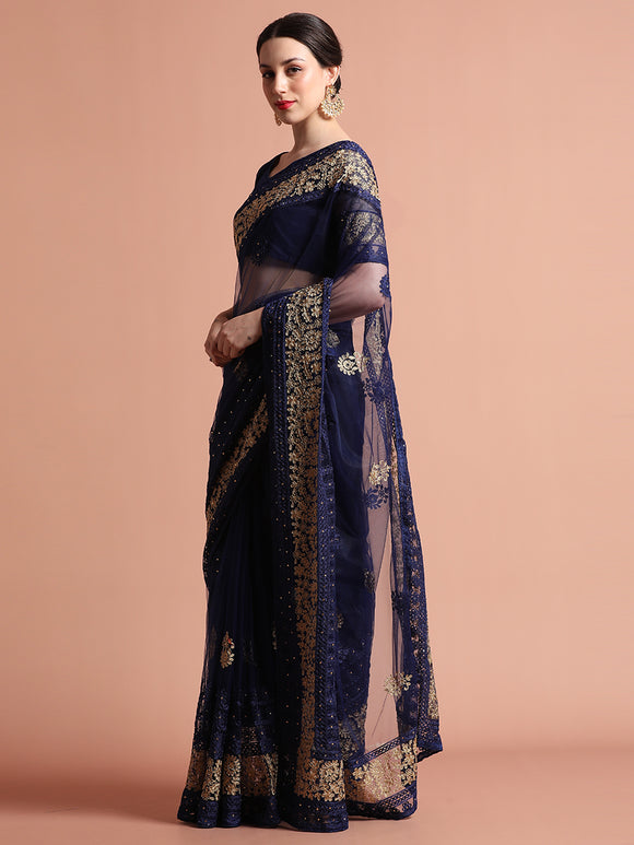 Navy Blue Embroidered Net Party Wear Saree Sale price₹ 2,579 Regular price₹ 6,999Save 63%