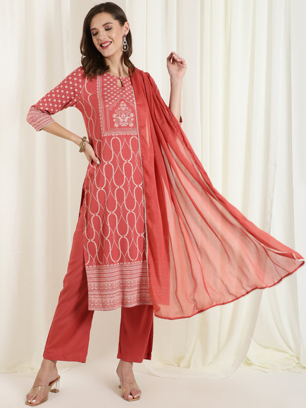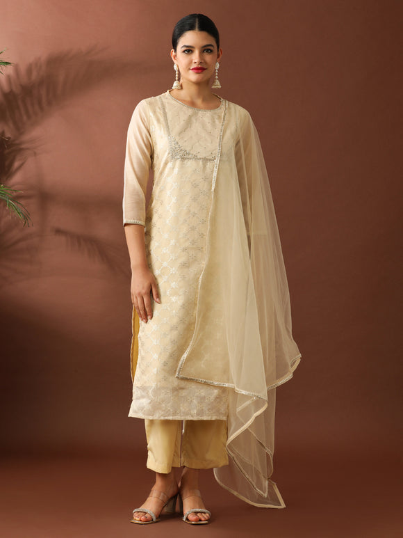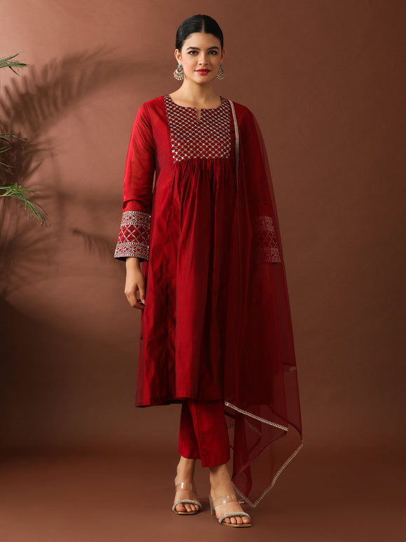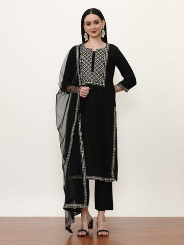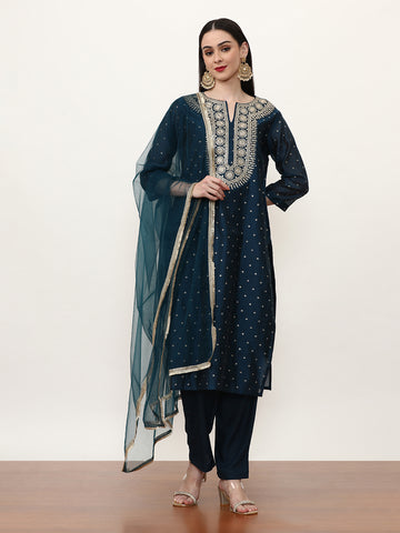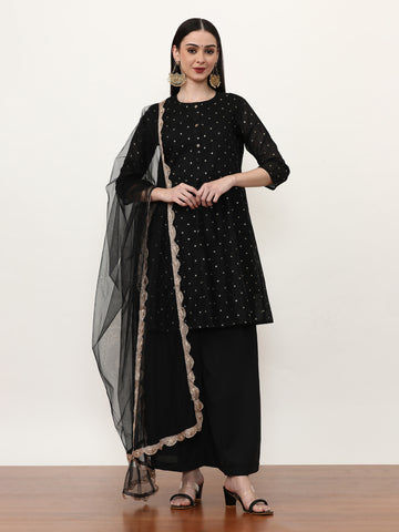 Jaipur Kurti offers a beautiful selection of handcrafted suits set for women. These suits are perfectly coordinated ethnic suit sets that feature a trendy kurti paired with bottoms and a matching dupatta. These sets are among our bestselling Black Friday deals. You can spot flowy anarkali suits, a-line suit sets, printed suit sets, and embroidered palazzo suits.