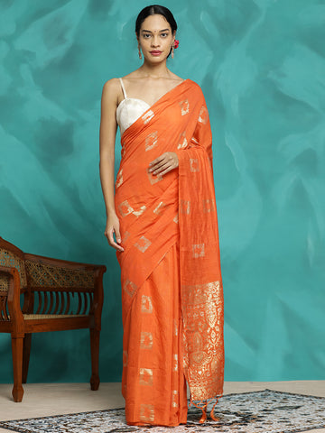 Orange Zari Woven Cotton Blend Banarasi Saree Sale price₹ 2,099 Regular price₹ 5,699Save 63%