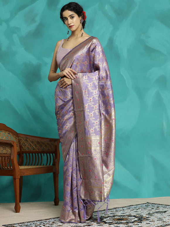 Zari Woven Heavy Lavender Banarasi Saree Sale price₹ 2,509 Regular price₹ 6,799Save 63%