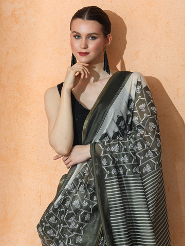 Geometric Chanderi Cotton Saree with Unstiched Blouse