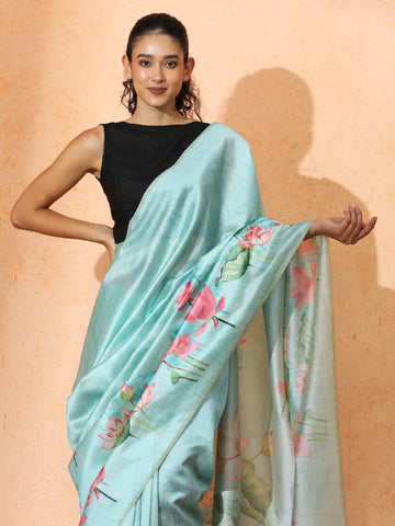 Ready To Wear Mulmul Cotton Floral Printed Saree with Unstiched Blouse