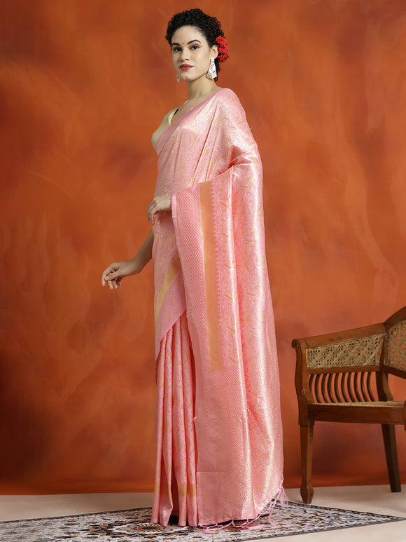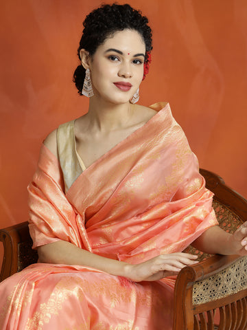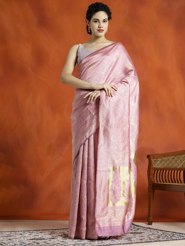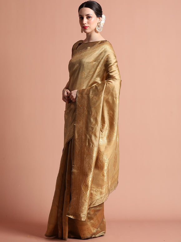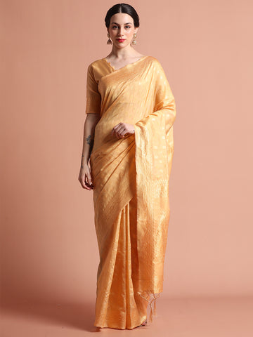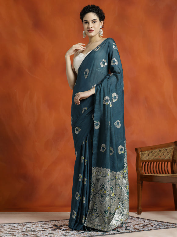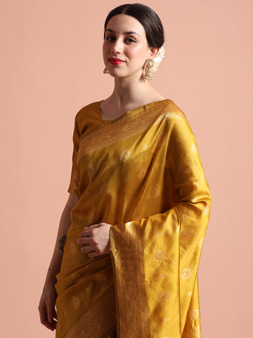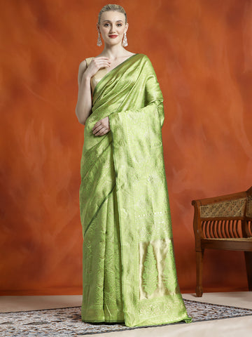 Pista Green Heavy Banarasi Zari Woven Silk Blend Saree