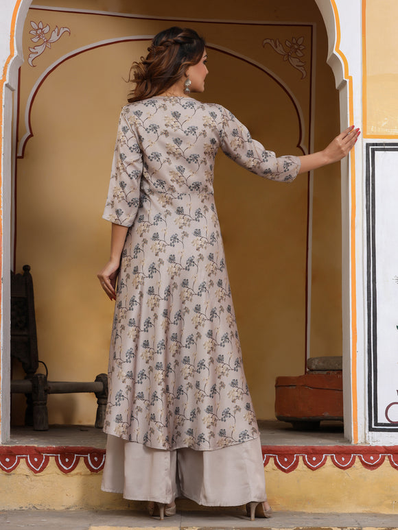 Printed sharara suit sets are smart, chic, and stunning. A floral sharara suit is perfect for the spring-summer season. Pakistani sharara suit design features beautiful and bold prints like abstract prints, geometrical prints, ethnic prints, and more. These prints are incorporated with the Sharara suit's latest design for a trendy look. Jaipur Kurtis has an extensive range of printed sharara suits online. These sharara suits for ladies are crafted from plush fabrics with stunning prints and patterns for an elevated look. An ethnic printed sky blue Sharara suit with a stylish Sharara suit neck design is the perfect spring-summer attire.