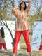 Yellow border printed sleepwear consists of short kaftan & pyjamas