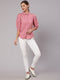 Pink Color Solid Silk Blend Shirt With Front Opening, Has Three-Fourth Puffed Sleeves, Buttons For Closure And A Curved Hem.