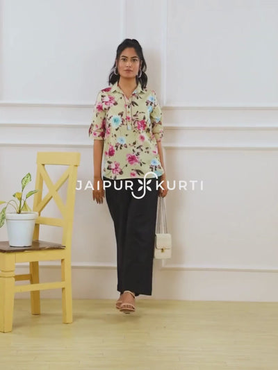 Green Floral Printed Linen Blend Top Sale price₹ 799 Regular price₹ 1,099Save 27%