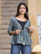 Grey Ethnic Printed Muslin Jacket Style Peplum Top With Cotton Inner