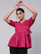 Magenta Solid Peplum Tie Up Top