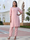 Pink Self Weave Yarn Dyed Rayon Co-Ord Set With Pearl Embellished Back Slit Kurta And Pants