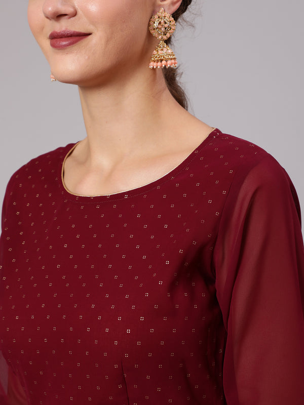 Maroon Georgette Gold Print Embellished Lehnga Has Crop Top, Skirt And Dupatta Sale price₹ 1,379 Regular price₹ 4,099Save 66%