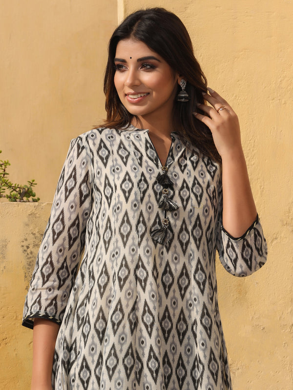 Ikat Printed Cream & Turquoise Blue Jacket With Palazzo Co-ord Set Sale price₹ 1,409 Regular price₹ 3,999Save 65%