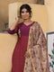 Embroidered Magenta Chanderi Kurta With Palazzo And Printed Dupatta