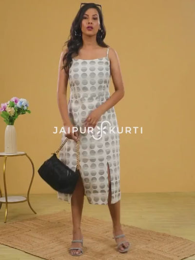 Beige And Black Printed Strappy Cotton Dress With Slits Sale price₹ 439 Regular price₹ 1,499Sold outSave 71%