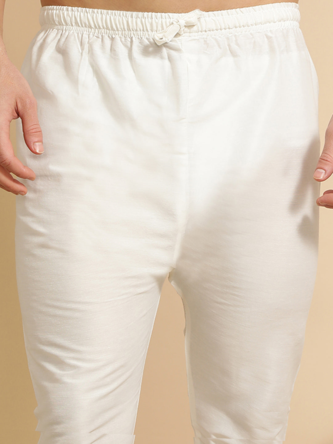 Carry a traditional style in this Geometric Printed Cotton Kurta for Men. It has a mandarin collar, front button placket, full-cuffed sleeves and a straight hemline.