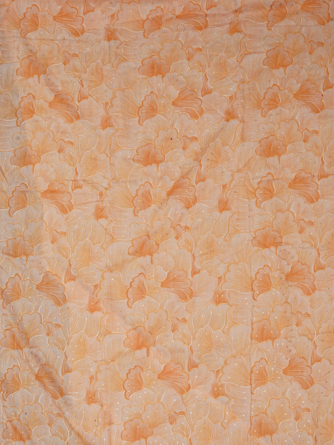 Beige Sequin Embellished Floral Printed Cotton Dress Material with Dupatta