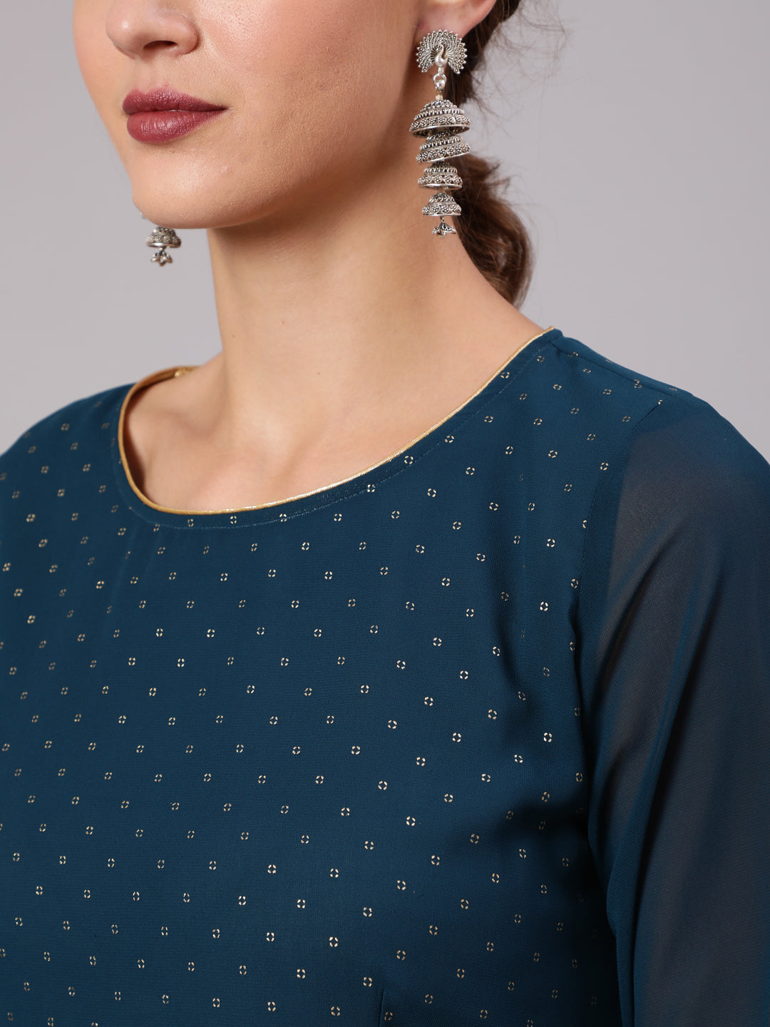 Blue Georgette Gold Print Embellished Lehnga Has Crop Top, Skirt And Dupatta