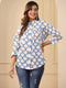 Blue Ikat Printed Tiered Cotton Loose Fit Top