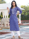 Blue Mirror Work Embroidered Muslin Straight Kurta
