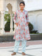Blue Printed Embroidered Velvet Aline Kurta With Solid Velvet Pant