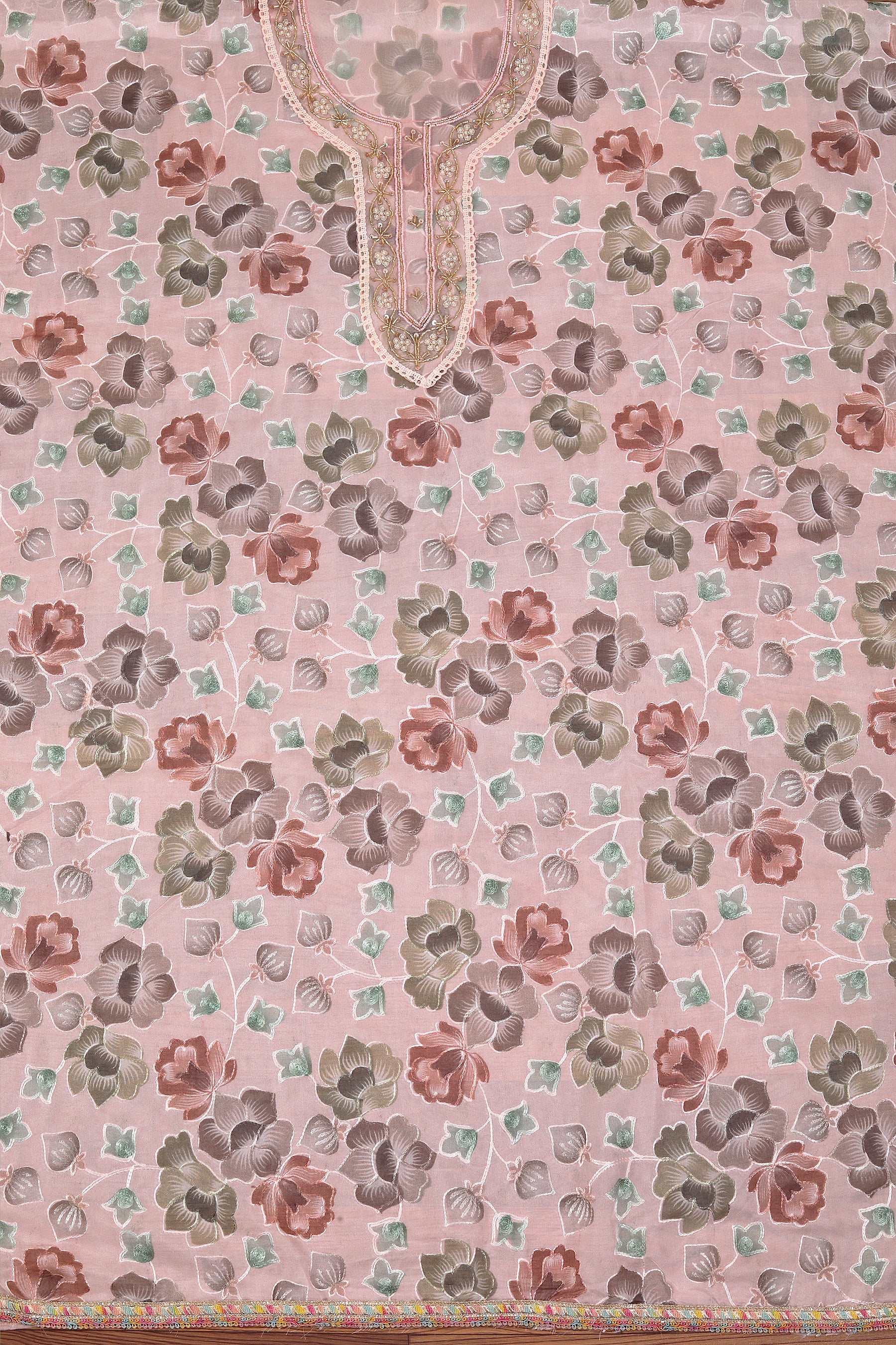 This Brown Embellished Woven Design Organza Unstitched Dress Material is a festive must-have. This set has a stone and beadwork embellished kurta, matching pants and an embroidered dupatta.