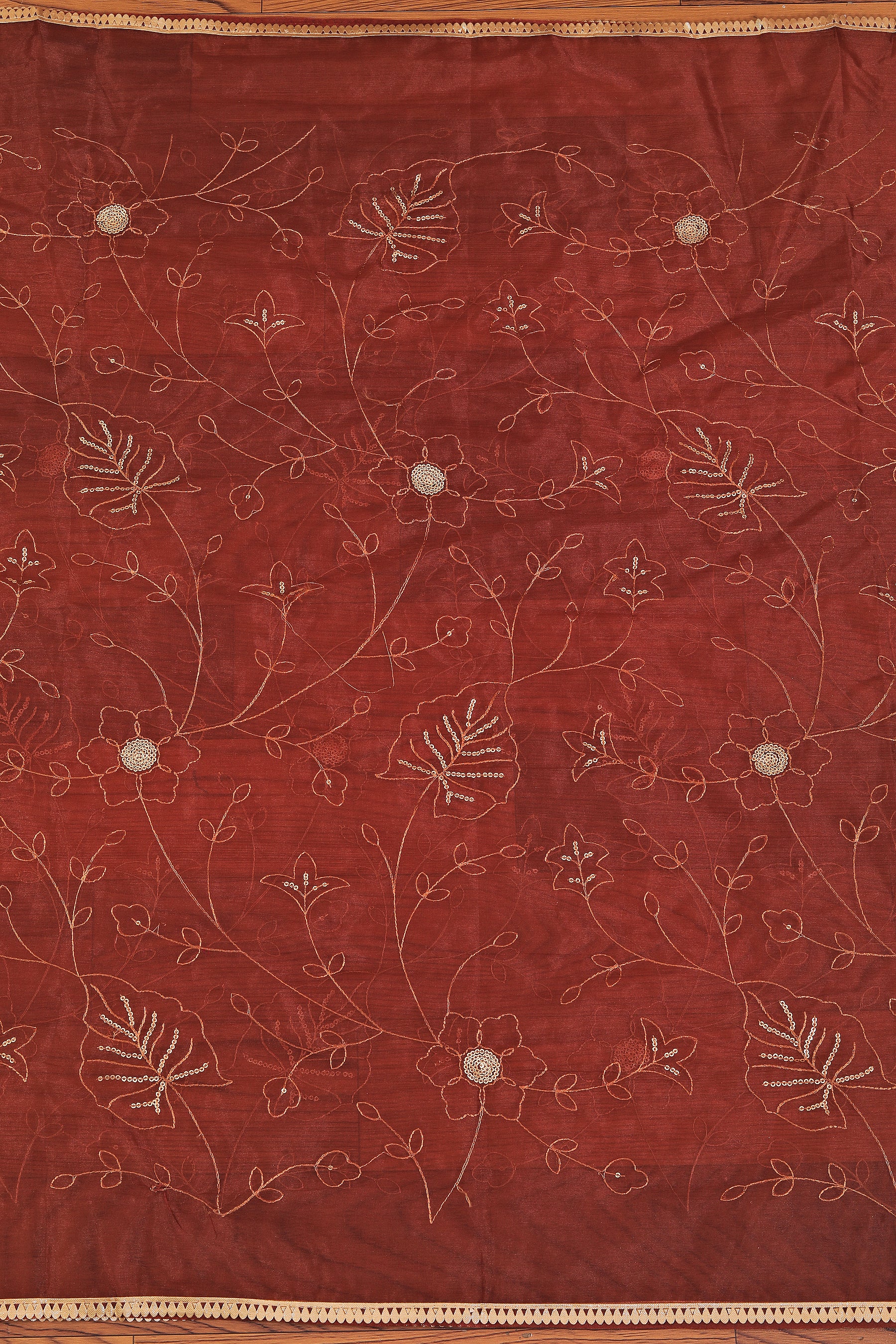 Brown Embellished Woven Design Organza Dress Material With Dupatta