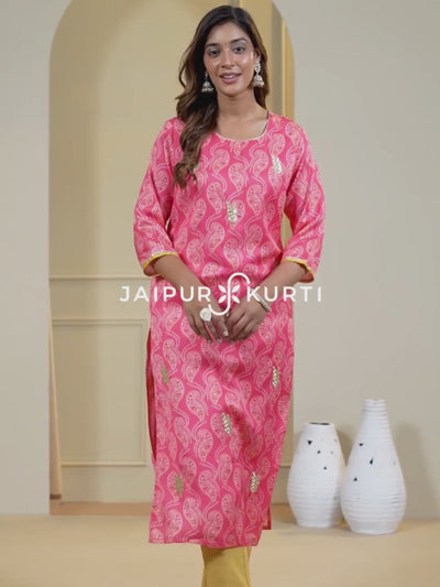 Embroidered Art Silk Peach Printed Straight Kurta With Cream Pants Sale price₹ 1,719 Regular price₹ 5,199Save 67%